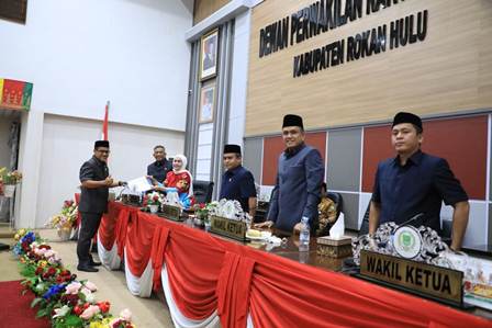 Lanjut Bupati Rokan Hulu mengucapkan terima kasih banyak, menyampaikan apresiasi dan penghargaan setinggi-tingginya kepada seluruh pimpinan dan anggota DPRD Rokan Hulu yang sudah bekerja keras, tak kenal lelah, kerja siang dan malam pembahasannya, sehingga disetujui dalam rapat paripurna yang terhormat ini.