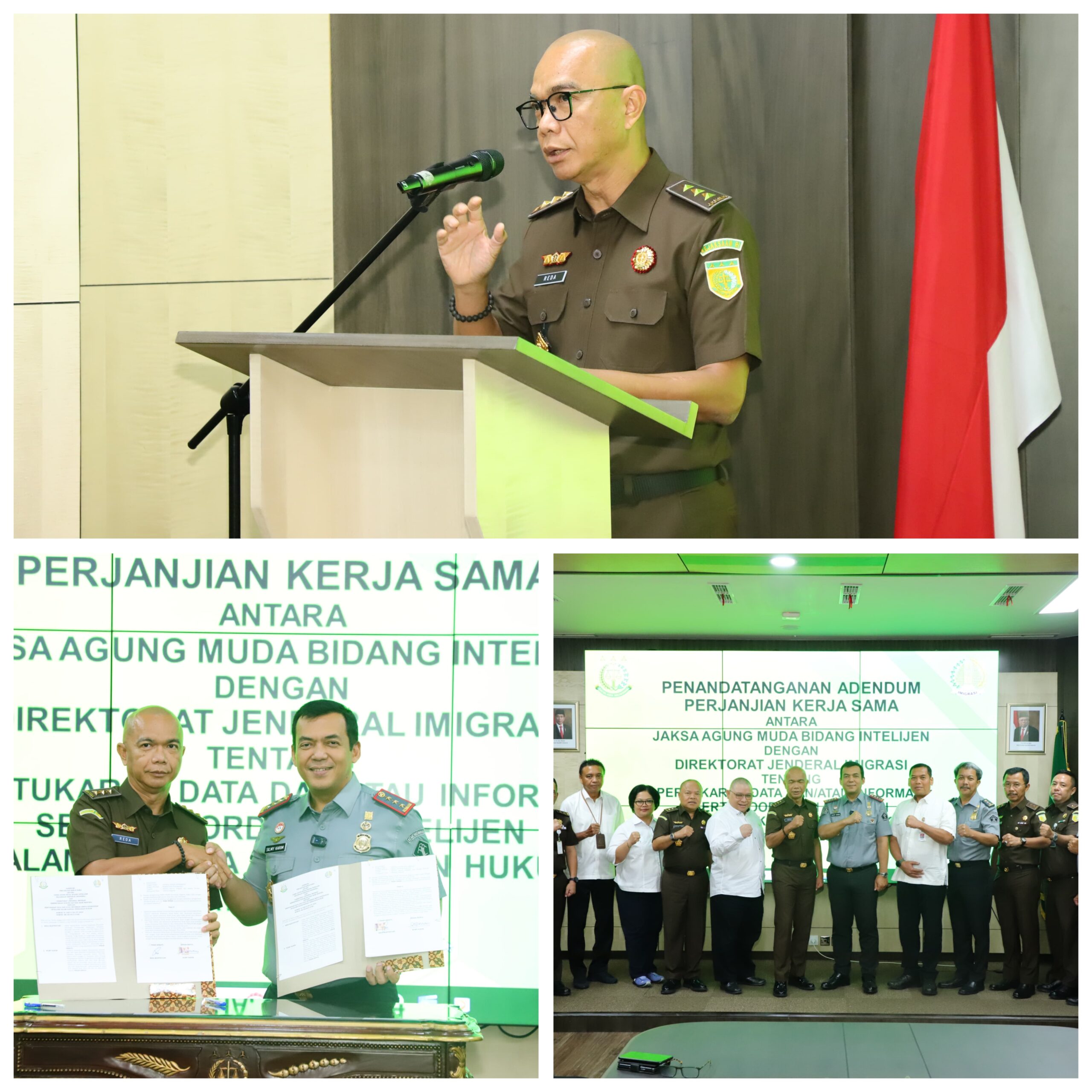Ojenews.com Jakarta,- Jaksa Agung Muda Intelijen (JAM-Intelijen) Prof. Dr. Reda Manthovani melaksanakan Penandatanganan Adendum Perjanjian Kerja Sama antara Jaksa Agung Muda Bidang Intelijen (JAM INTEL) dengan Direktorat Jenderal (Dirjen) Imigrasi terkait pertukaran data dan/atau informasi serta koordinasi intelijen dalam rangka penegakan hukum.