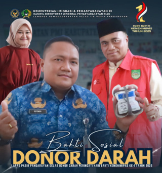 Y Lembaga Pemasyarakatan (Lapas) Kelas IIB Pasir Pangarayan melaksanakan kegiatan donor darah dalam rangka memperingati Hari Bakti Kementerian Imigrasi dan Pemasyarakatan (Kemenimipas) ke-1 Tahun 2025, Senin (17/11/2025). Tahun ini, Hari Bakti Kemenimipas mengusung tema “Satu Langkah, Satu Semangat, Satu Pengabdian untuk Bangsa,” yang menjadi landasan semangat dalam setiap kegiatan sosial yang dilaksanakan.