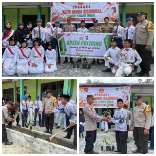 Ojenews.com Dumai Riau,-Polres Dumai melalui Polsek Bukit Kapur melaksanakan kegiatan Green Policing di MTs YAMAS Dumai, Kecamatan Bukit Kapur. Kegiatan ini meliputi penanaman pohon dan pemberian edukasi kepada siswa-siswi tentang pentingnya menjaga alam dan lingkungan sejak dini.