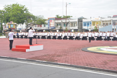 Apel tersebut dipimpin langsung oleh Sekretaris Daerah dr. Ersan Saputra dan diikuti Asiten II Toharudin, Staf Ahli Bupati Bidang Pemerintahan Hukum dan Politik Ed Efendi, Staf Ahli Bupati Bidang Kemasyarakatan dan SDM Johansyah Syafri, Plt. Staf Ahli Bupati Bidang Ekonomi, Keuangan dan Pembangunan H. Khairi Fahrizal, para Kabag, Kepala Daerah, Kabid, Kasubbag, Jabfung, seluruh ASN dan Non ASN dilingkungan Pemerintah Kabupaten Bengkalis.