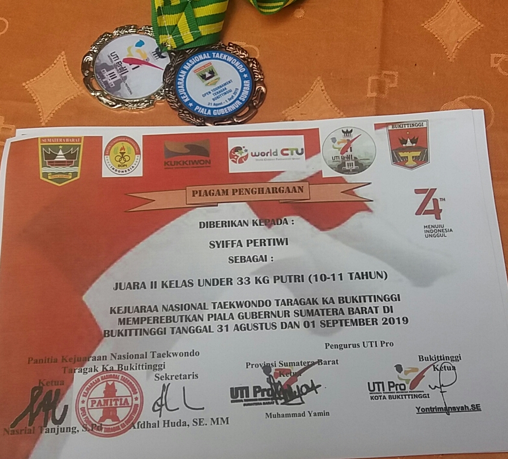 Baru baru ini Syffa mampu meraih prestasi dalam Iven bergengsi kejuaraan Nasional Taekwondo Taragak Ka Bukik Tinggi yang memperebutkan piala Gubernur Sumatra Barat di Bukit Tinggi yang digelar pada Tanggal 31 Agustus dan 01 September 2019 lalu.