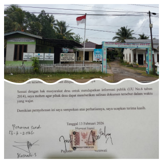 Sesuai dengan Hak masyarakat Desa untuk mendapatkan informasi Publik ( Undang-Undang Nomor 6 tahun 2014), Bapak Pujiyono dan Ibu Verawati mohon agar pihak desa dapat memberikan salinan dokumen tersebut dalam waktu yang Wajar